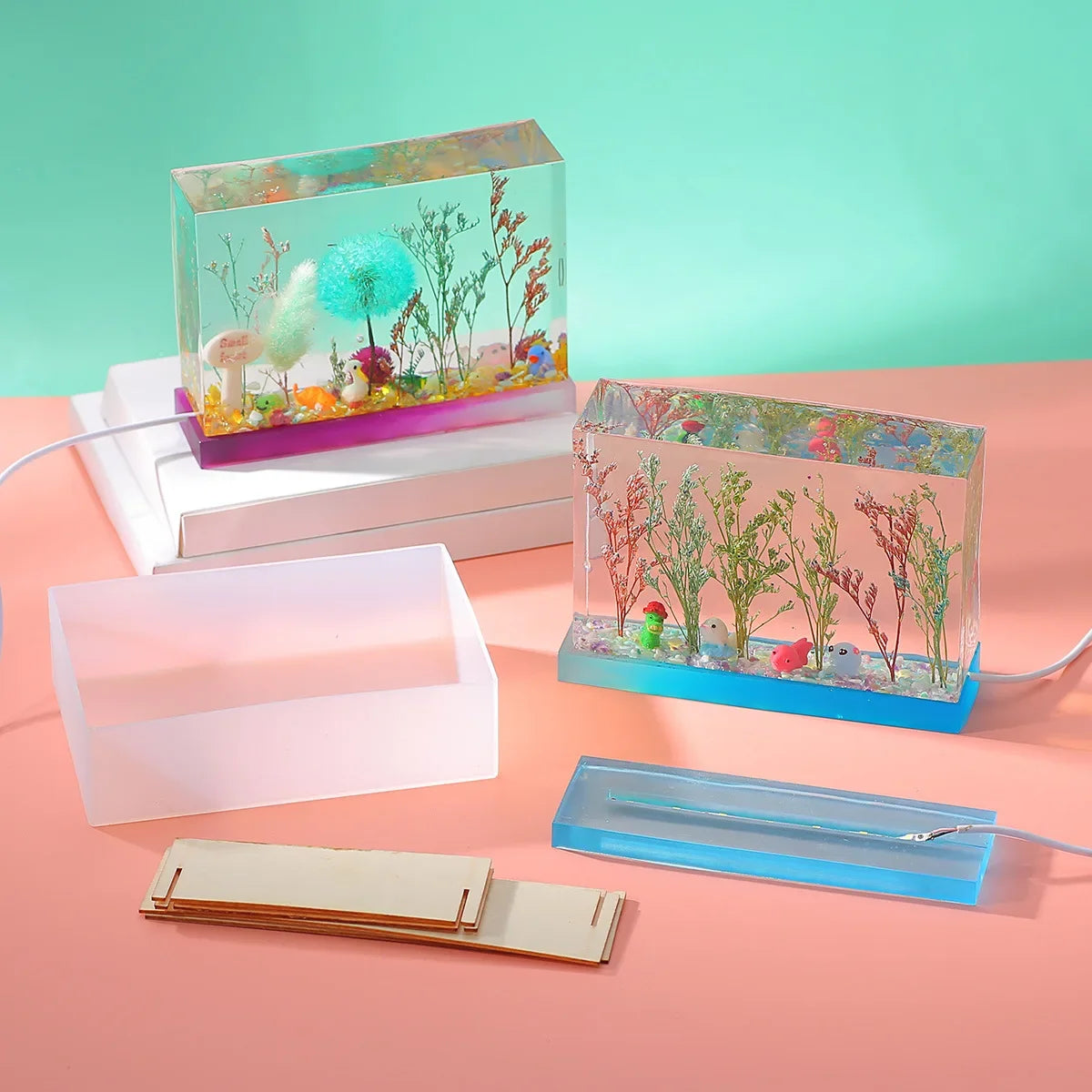 Trockenblume 3D Würfel Ornament, quadratischer LED-Lampenhalter, quaderförmige Silikonform